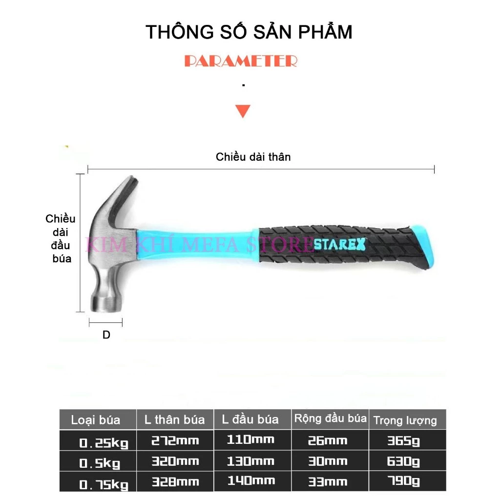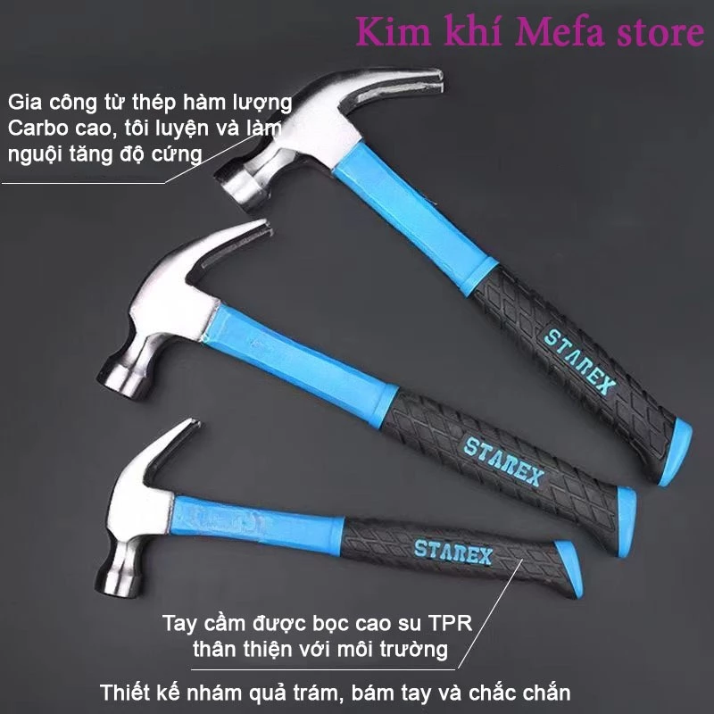 Búa đóng đinh, nhổ đinh nguyên khối HD - Búa đóng nhổ đinh tay cầm chắc chắn 0.25 Kg, 0.5 Kg, 0.75 Kg