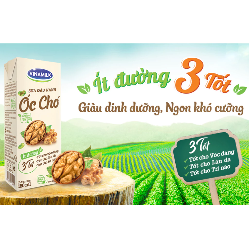 Loại sữa: Đậu nành hạt óc chó Phù hợp: Dùng cho trẻ từ 4 tuổi trở lên