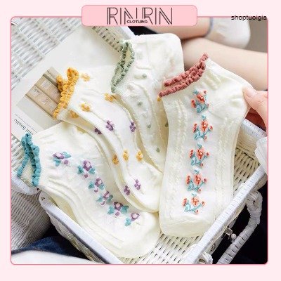 🌸 THÔNG TIN SẢN PHẨM Tất vớ nữ cổ ngắn nhún bèo thêu hoa nhí chất cotton thoáng mát phong cách Hàn Quốc RIN RIN (ẢNH THẬT RIN RIN TỰ CHỤP)